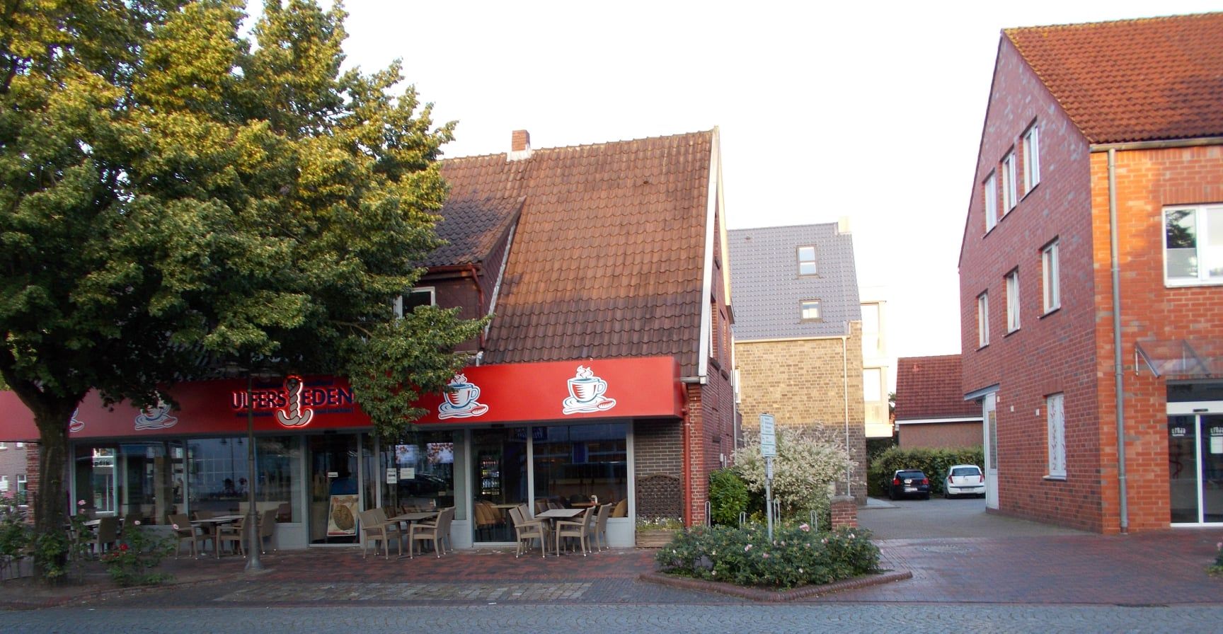Vor allem aber haben Café-Gäste vor Eden mehr Ruhe, wenn die Durchfahrt zur Menkestraße künftig gesperrt und von der Oldenburger Straße nur noch Anliegerverkehr zu Arzt, Apotheke, Bäcker und Kiosk möglich ist. Der künftige Platz kann hinter der Parkplatzzufahrt zum Ärztehaus (hinter Eden) beginnen. Genauso wie diese Parkplatzzufahrt sollen auch die rechtwinklig vor Hayen angeordneten 8 Parkplätze (siehe Foto 5) erhalten bleiben. Das dürfte an Parkplätzen reichen, weil der Einkaufsverkehr für Hayen ja wegfällt und das künftige Restaurant Coskun über eigene, näher zum Restauranteingang gelegene Parkplätze an der Ladestraße verfügt.